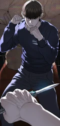 Hobin celebrating after winning against Jisoo
